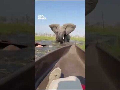 Elefante persigue a turistas en canoa por el Delta del Okavango, en Sudáfrica